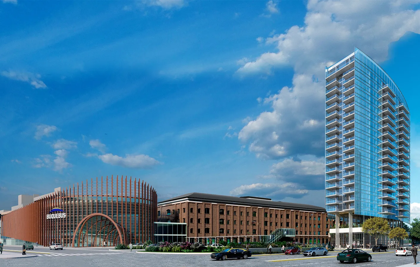 En un lote de más de 27.000 m2, estamos desarrollando la ampliación de la terminal actual, con la intervención tanto del edificio existente del check in como del histórico dock, generando un absoluto re-ordenamiento peatonal y vehicular, al que se sumará un paseo gastronómico de más de 2600 m2 de superficie pública, con amplias expansiones a una plaza central que estará vinculada a los diques de Puerto Madero, junto a exclusivos locales y un patio de comidas con la mejor calidad y variedad de la gastronomía rioplatense.